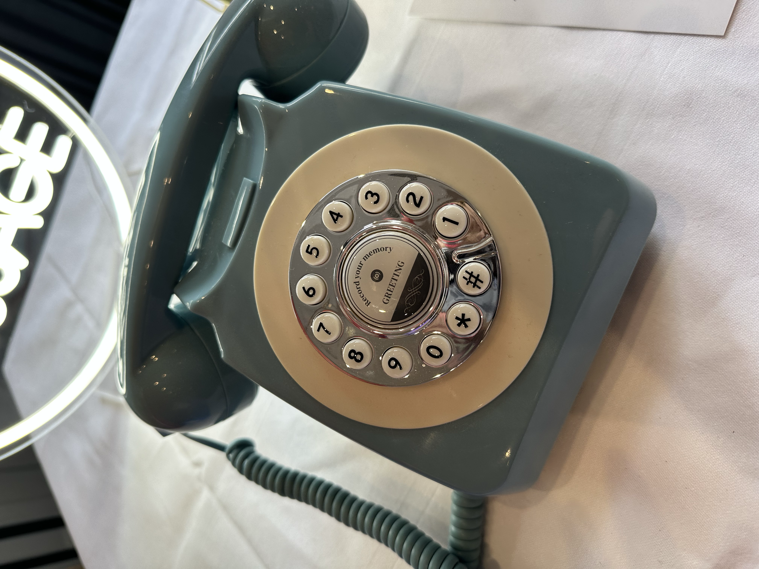 Our audio guest book service includes a charming retro baby blue phone that's perfect for baby showers, gender reveals, and weddings.